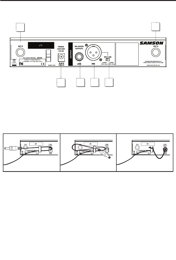 C: 1/4-inch output* - Use this 1/4" jack when connecting the AR300 to your guitar
